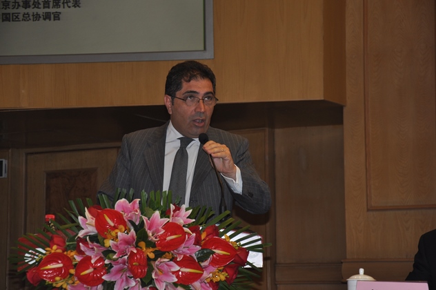 意大利對外貿(mào)易委員會北京辦事處首席代表、中國區(qū)總協(xié)調(diào)官Mr. Antonino Laspina講話