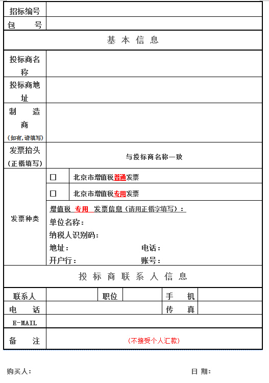 3、標(biāo)書(shū)款發(fā)票將以投標(biāo)商填寫(xiě)的發(fā)票信息為準(zhǔn)開(kāi)票,發(fā)票開(kāi)出不退不換;