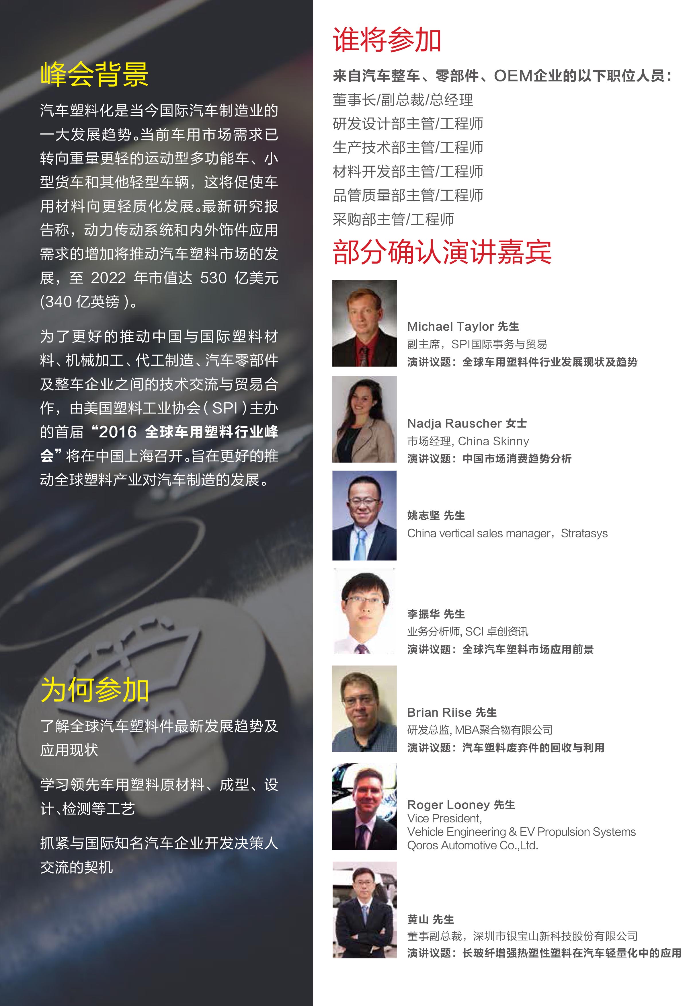 “”2016全球車用塑料行業(yè)峰會”正在火熱報名中