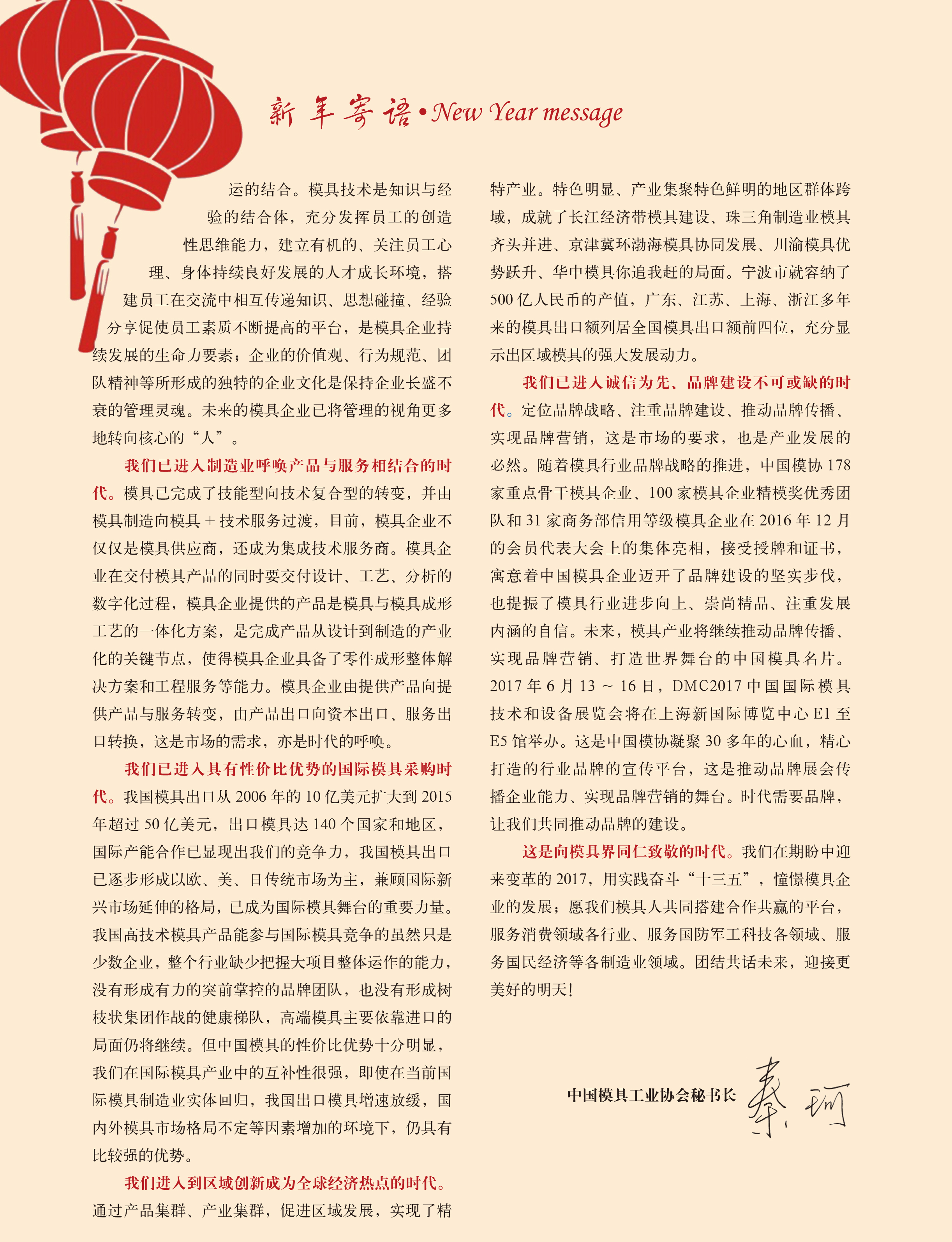 ——中國模具工業協會秘書長2017新春致詞
