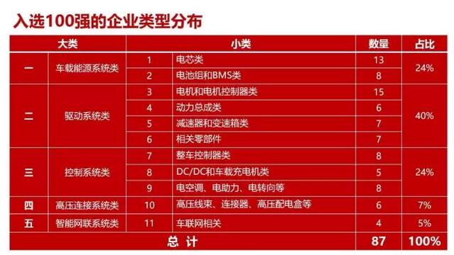 中國電動汽車零部件100強入選名單