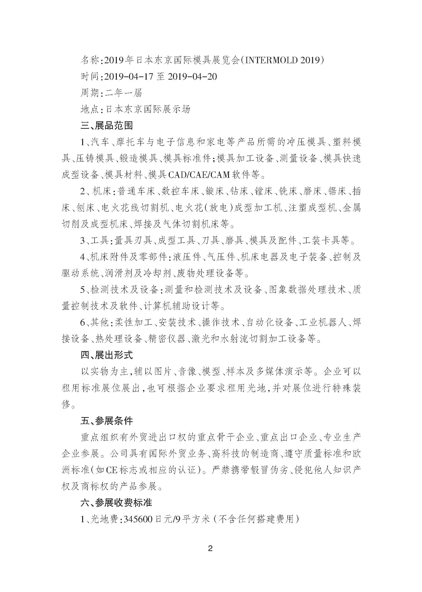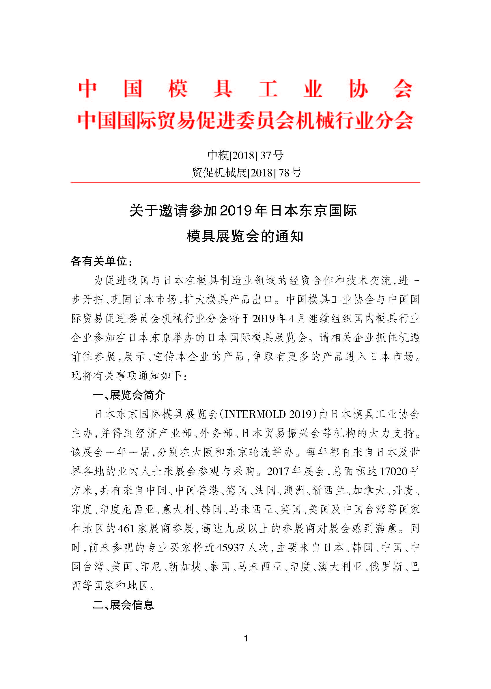 關(guān)于邀請(qǐng)參加2019 年日本東京國(guó)際模具展覽會(huì)的通知