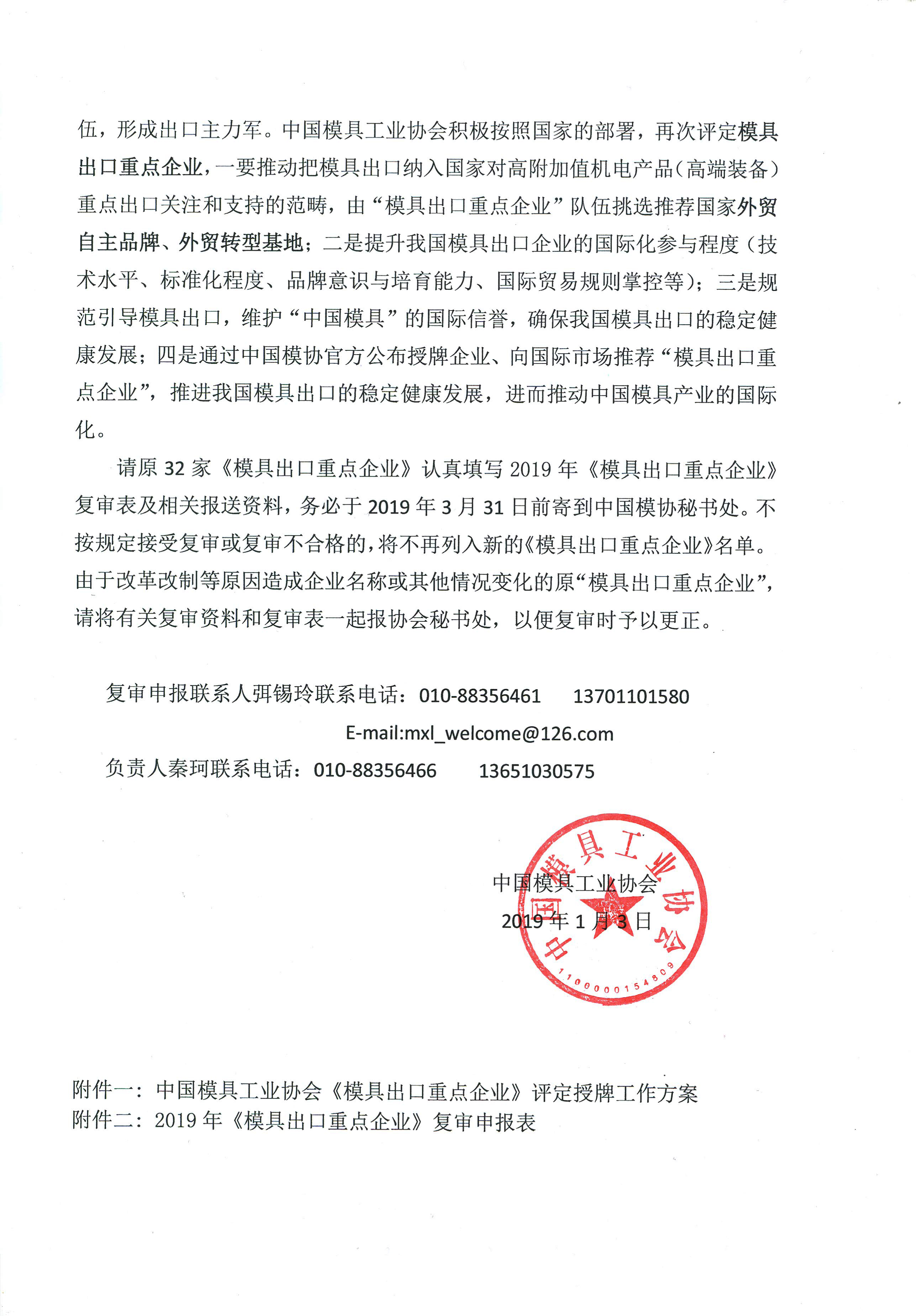 關(guān)于開展32家《模具出口重點企業(yè)》復(fù)審工作的通知