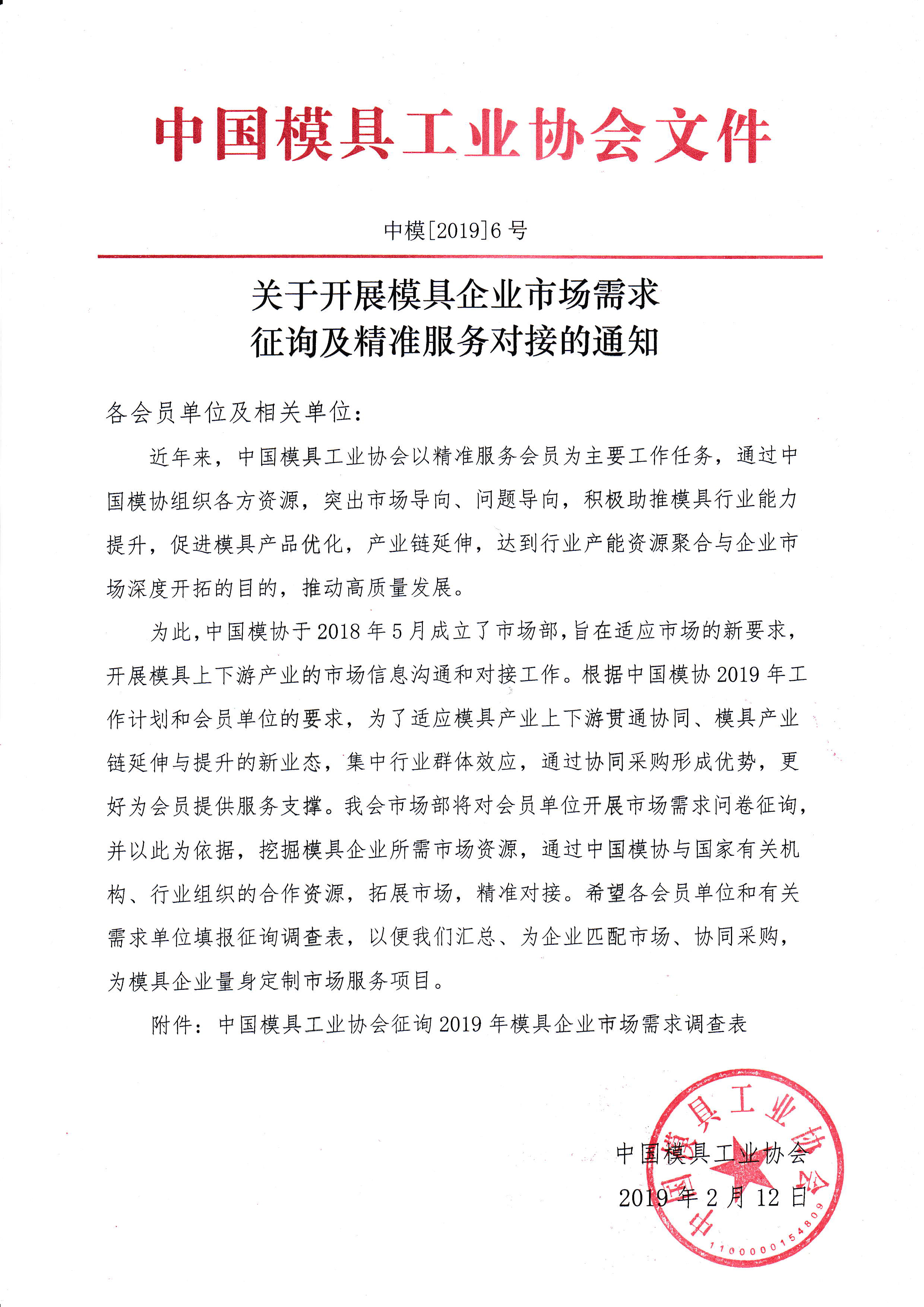 關于開展模具企業市場需求征詢及精準服務對接的通知