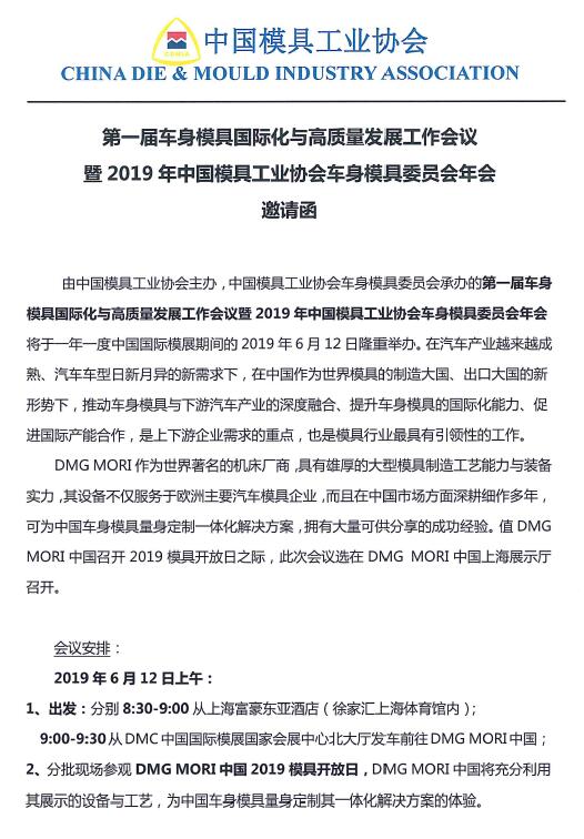 第一屆車身模具國際化與高質量發展工作會議暨2019年中國模協車身模具委員會年會邀請函