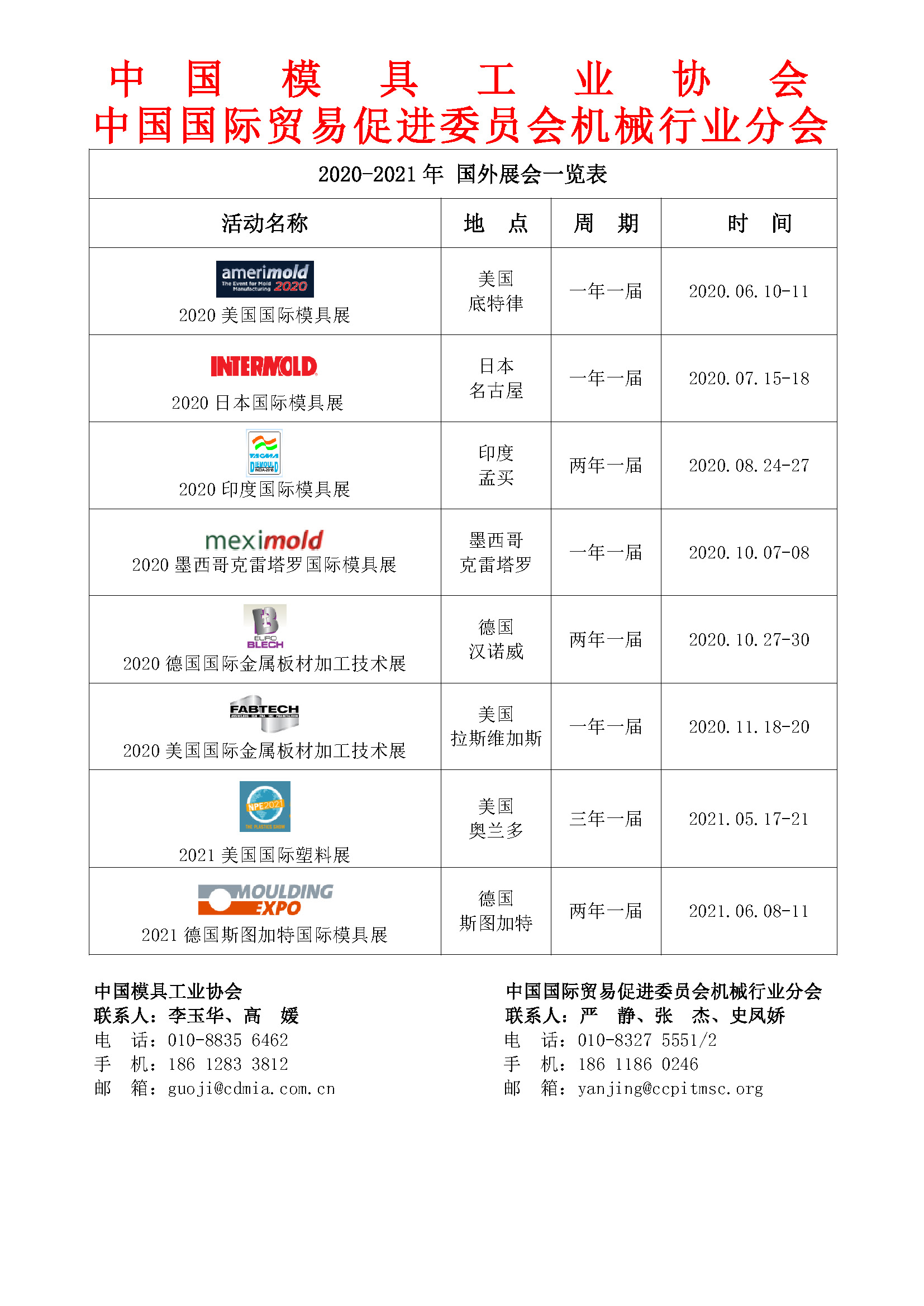 2020-2021年 國(guó)外展會(huì)一覽表