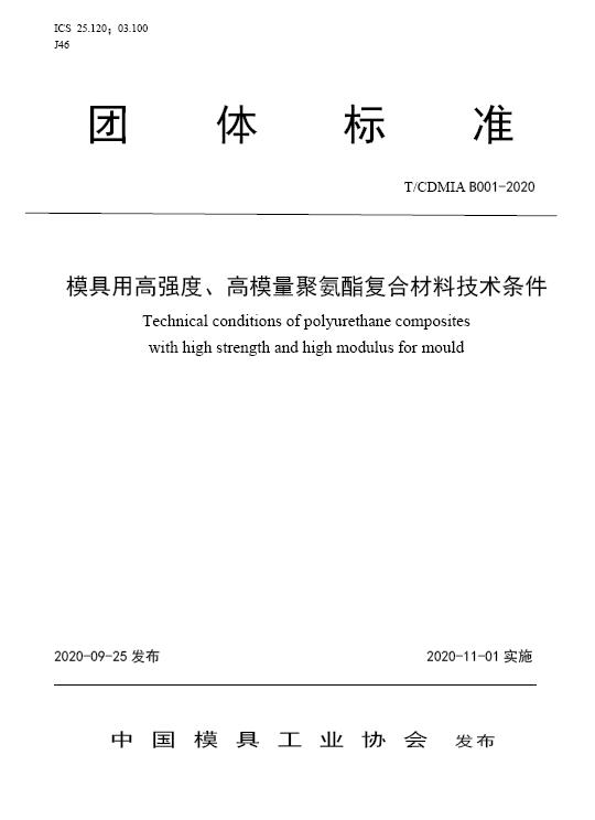 中國模協(xié)標準B001-模具用高強度、高模量聚氨酯復(fù)合材料技術(shù)條件-2020