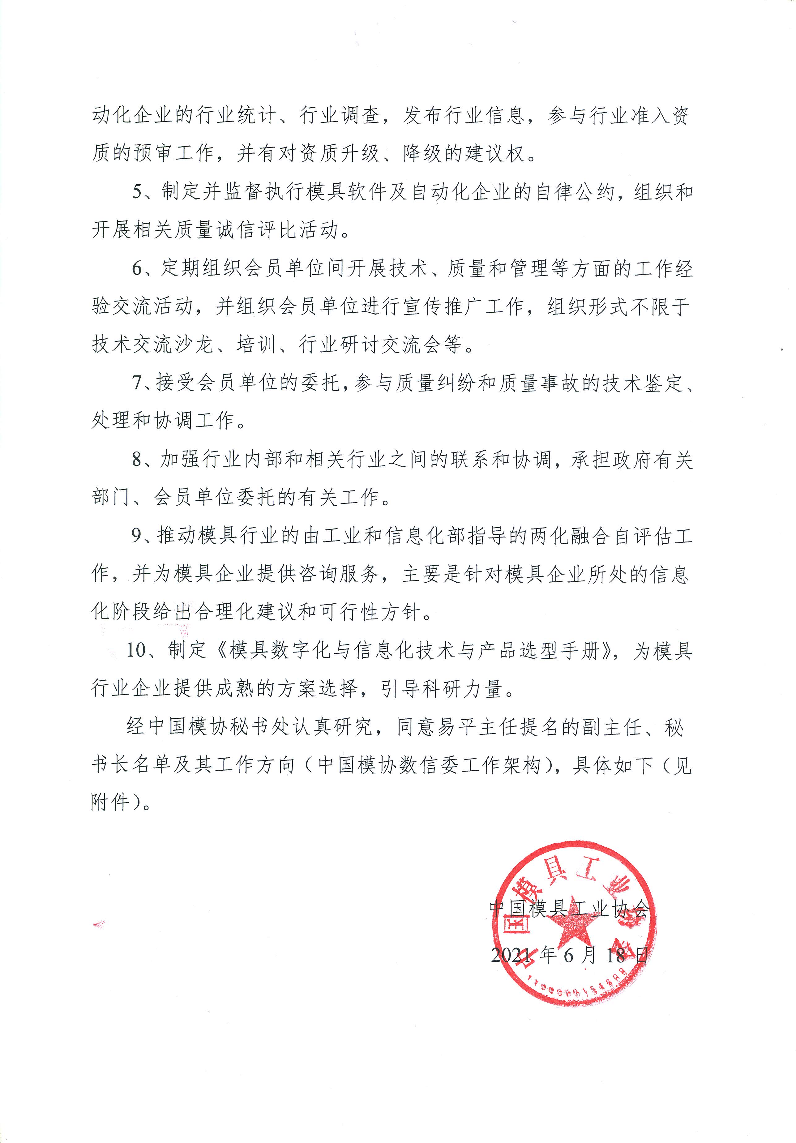中國(guó)模協(xié)第九屆理事會(huì)數(shù)字化信息化委員會(huì)副主任、秘書長(zhǎng)組成及工作架構(gòu)的批復(fù)