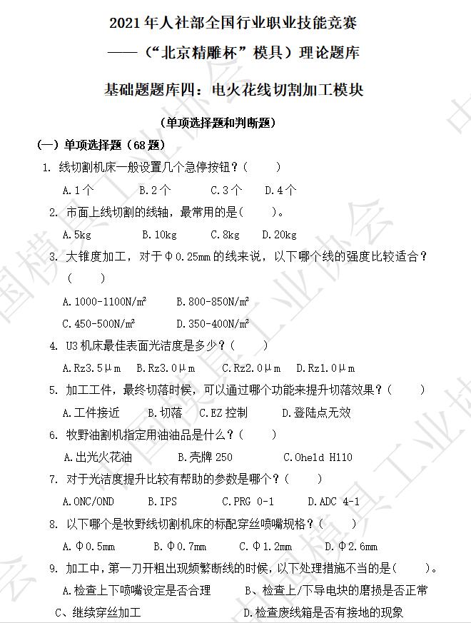 基礎題題庫四:電火花線切割加工模塊