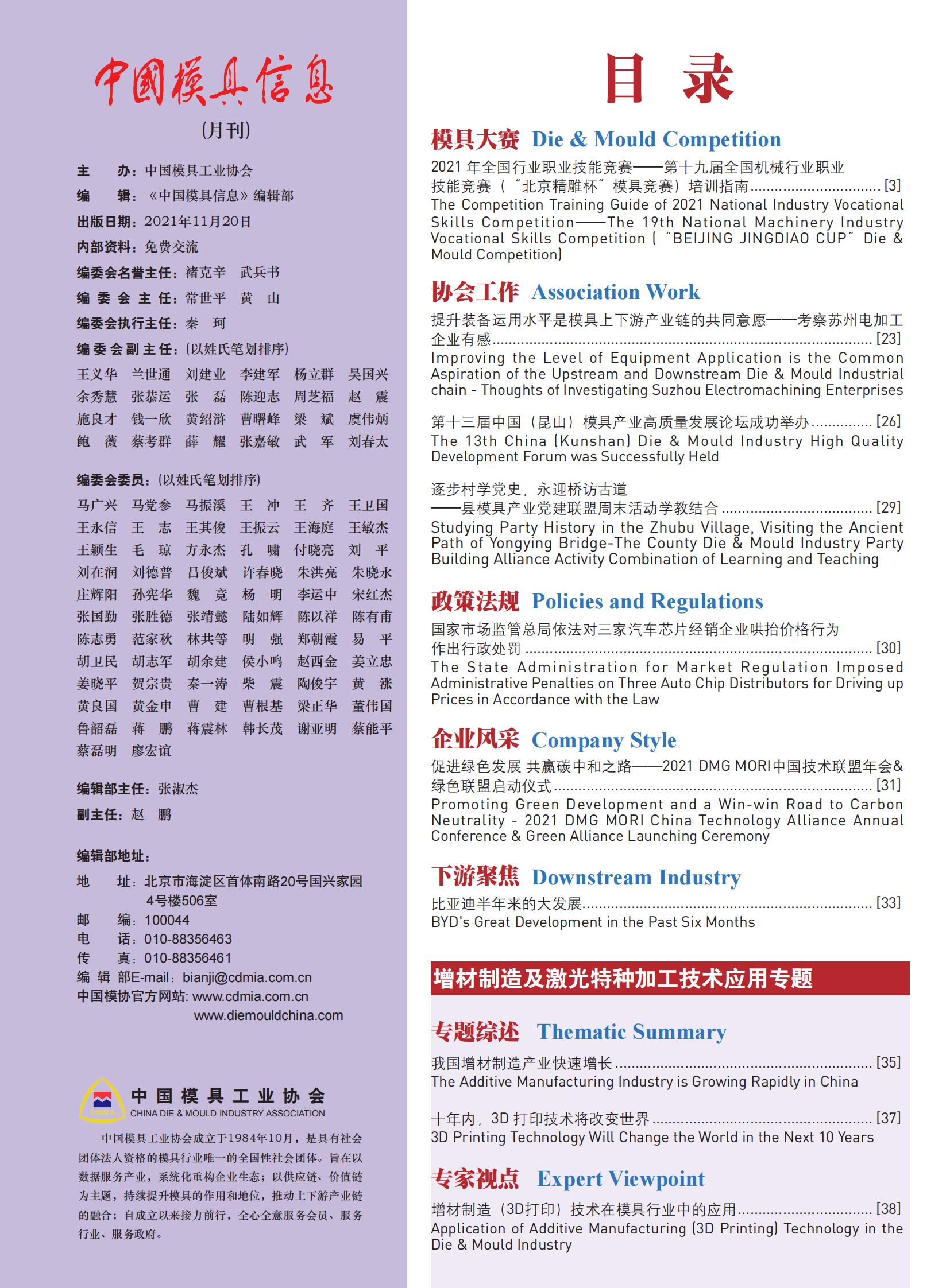 模具行業(yè)“十四五”發(fā)展綱要? ?100元/本? ? ?聯(lián)系電話:010-88356463
