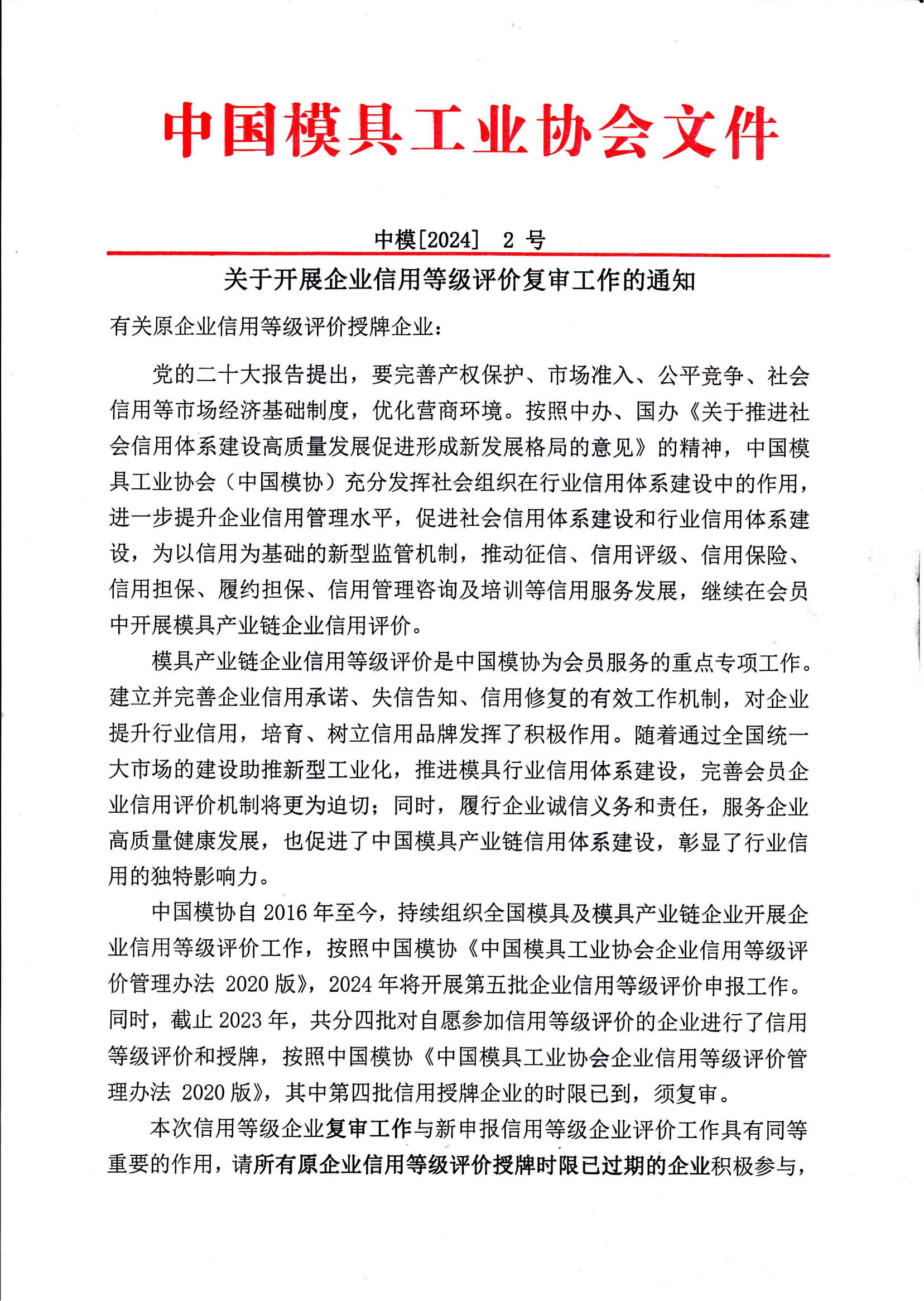 附件一:2024中國模具工業(yè)協(xié)會企業(yè)信用等級評價復評申報書.docx