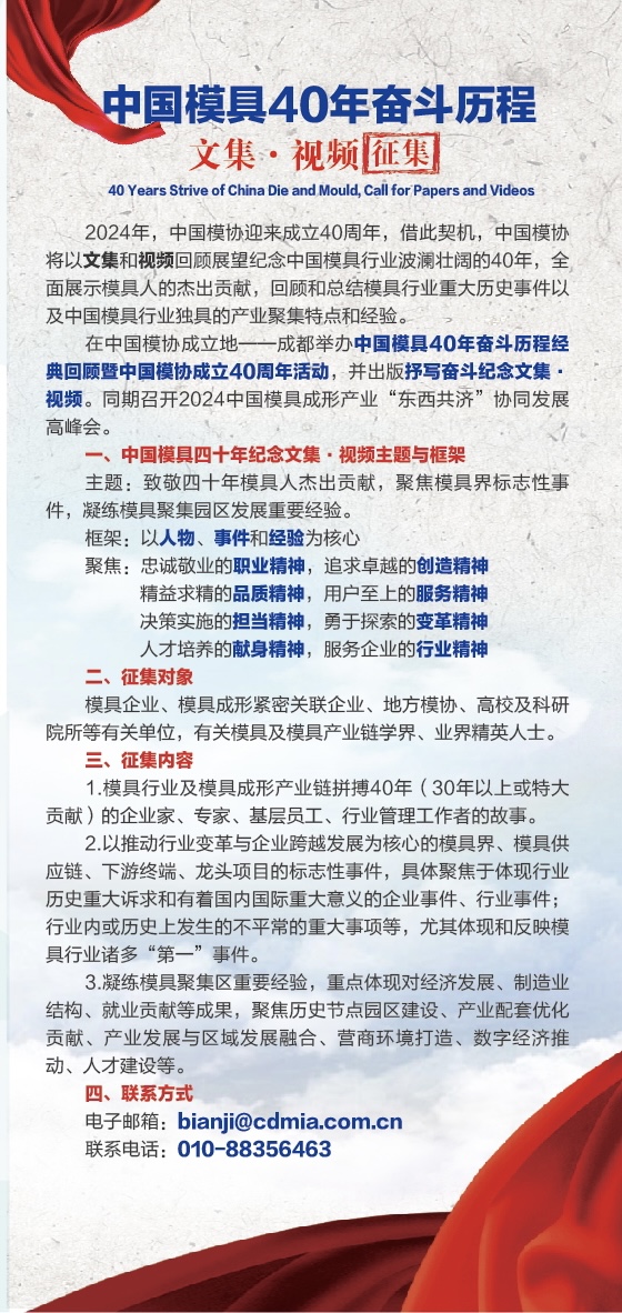模具行業“十四五”發展綱要? ?100元/本? ? ?聯系電話:010-88356463