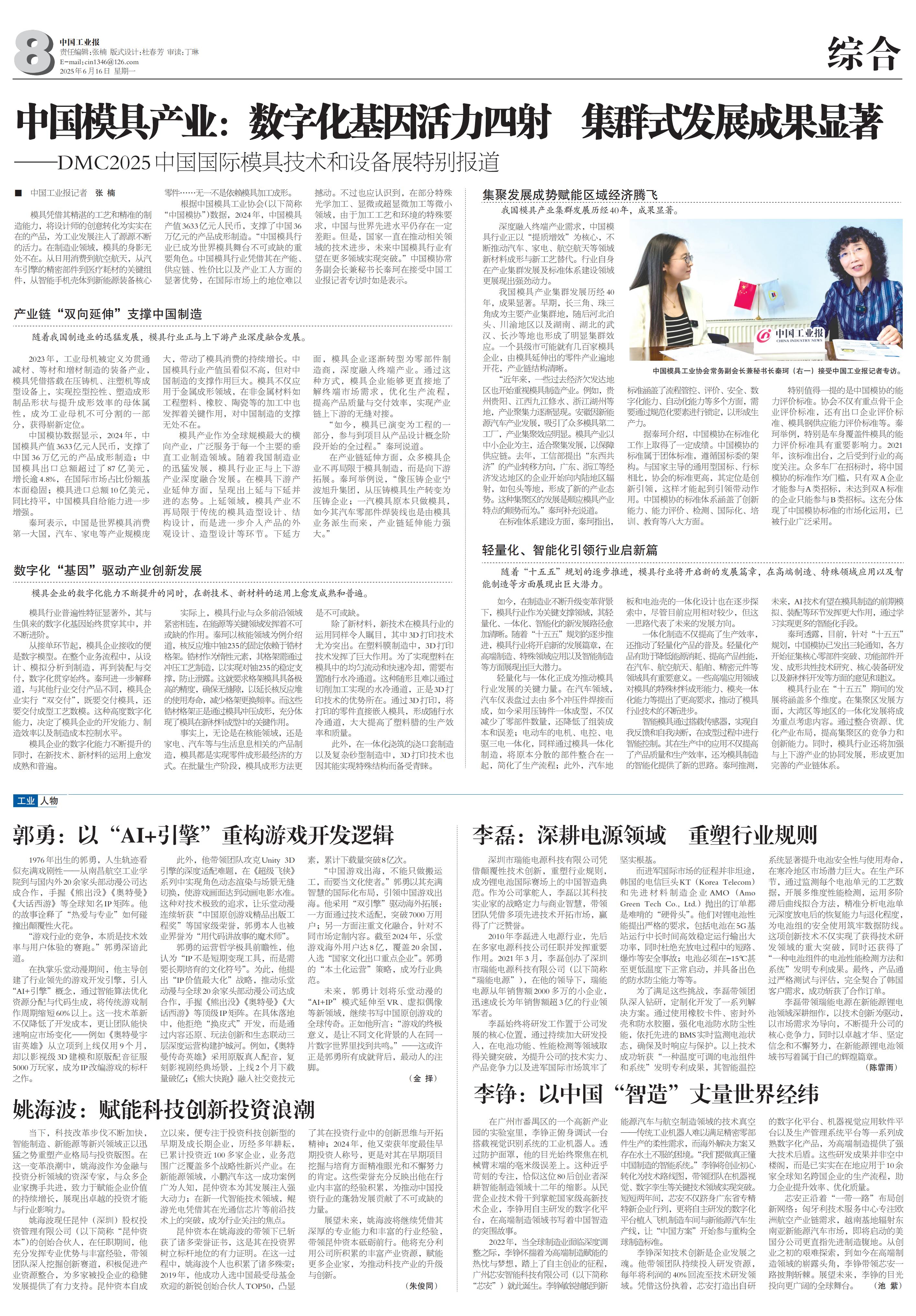 中國模具產(chǎn)業(yè)看DMC2025:數(shù)字化基因活力四射 集群式發(fā)展成果顯著-中國工業(yè)報報道.pdf